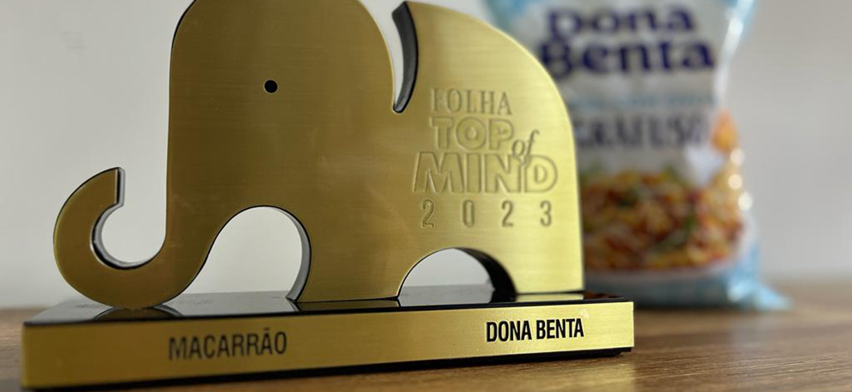 Pela primeira vez, o macarrão Dona Benta é premiado com o Top Of Mind 2023, na categoria Macarrão, pelo Instituto Datafolha. A marca – carro-chefe da J.Macêdo, líder e referência nacional nos segmentos de farinha de trigo e misturas para bolos e a segunda maior companhia de massas alimentícias – está entre as três melhores do País. Em sua 33ª edição, o Top of Mind é o resultado de uma pesquisa realizada em 169 municípios, nas cinco macrorregiões nacionais, com base nas marcas mais lembradas pelos brasileiros em 80 categorias.